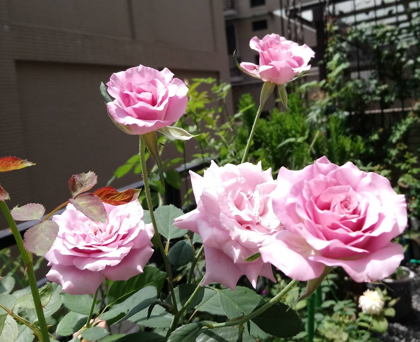 夏日的龐帕杜夫人,花朵香氣大小如春花,長勢強,發筍不斷,多頭花苞,二年株令人驚豔。