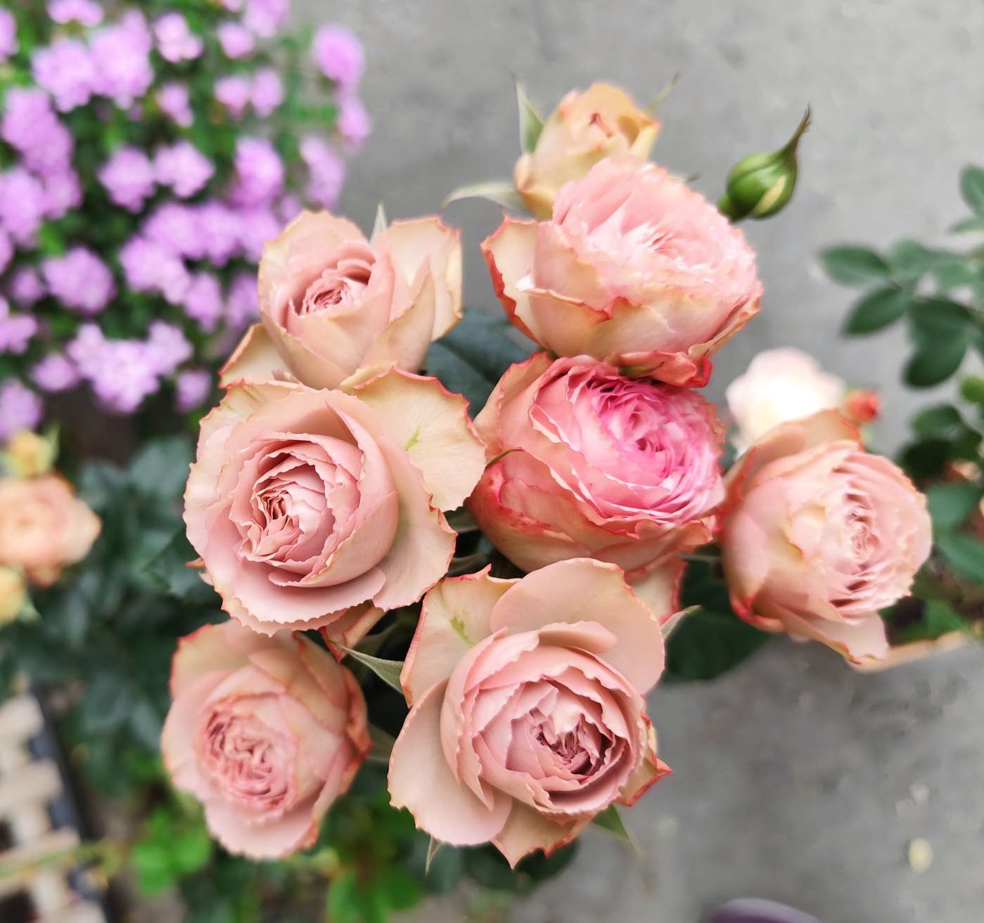 裸色蕾絲,長速飛快,粗筍上簇生成一個大花球,花瓣厚實耐開,不錯。但是個狼牙棒,不喜多刺大刺的人就不推薦這品,