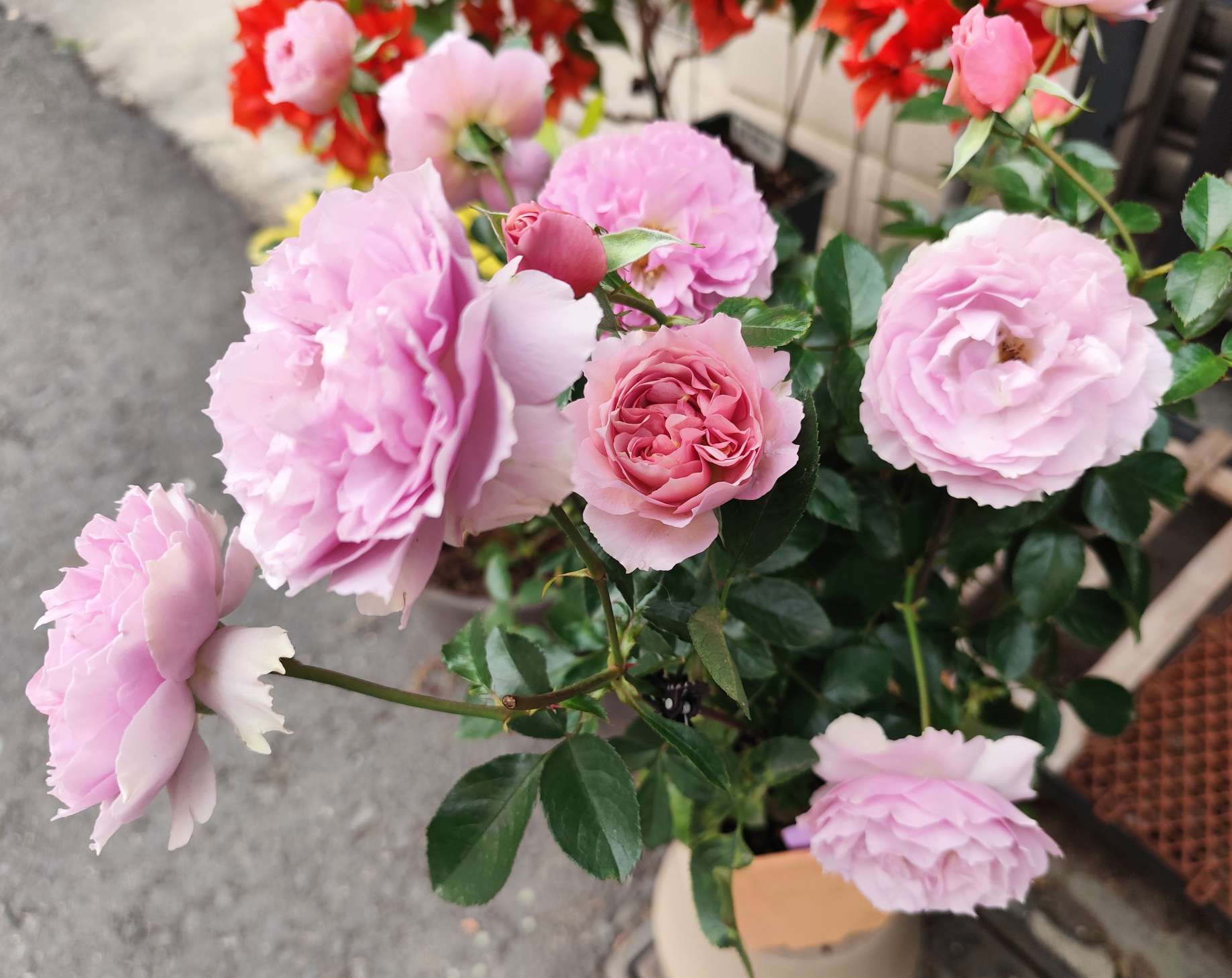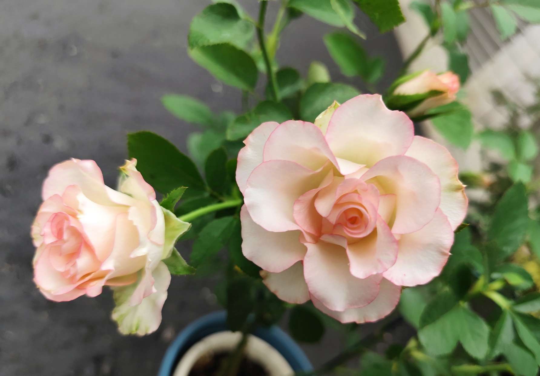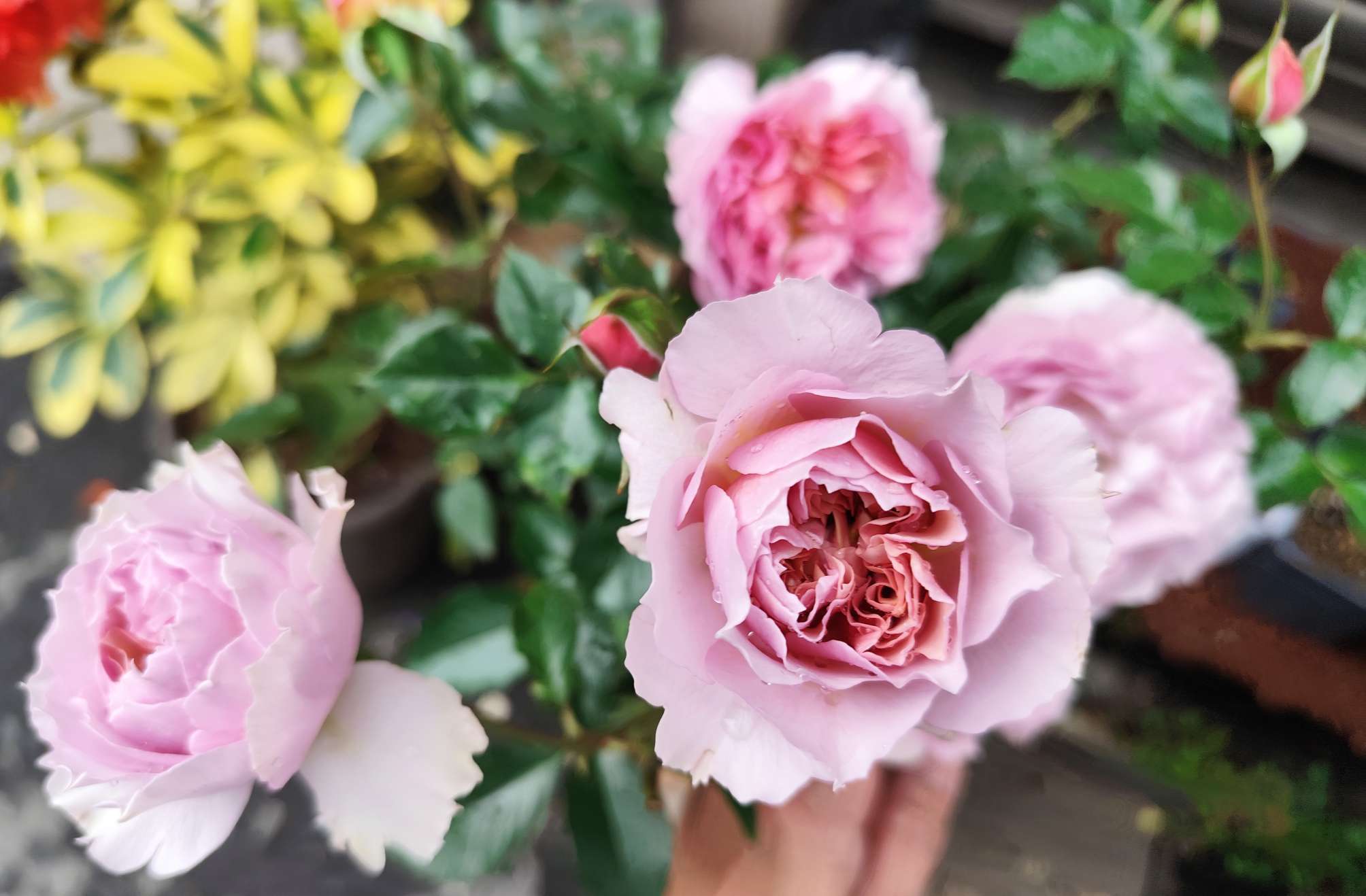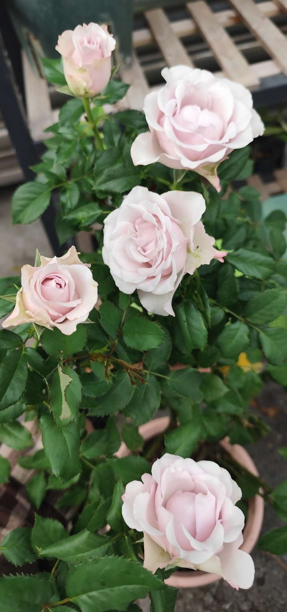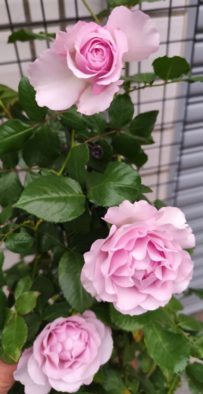粉妝樓,我玫瑰群裡的第一元老,歷經我菜鳥時期亂種,紅蜘蛛白粉病摧殘到沒剩幾片葉子,她都熬過來,八九歲有了吧,看似柔弱也易得病,但只要有挽救,都挺得下去且非常會開花,大推薦