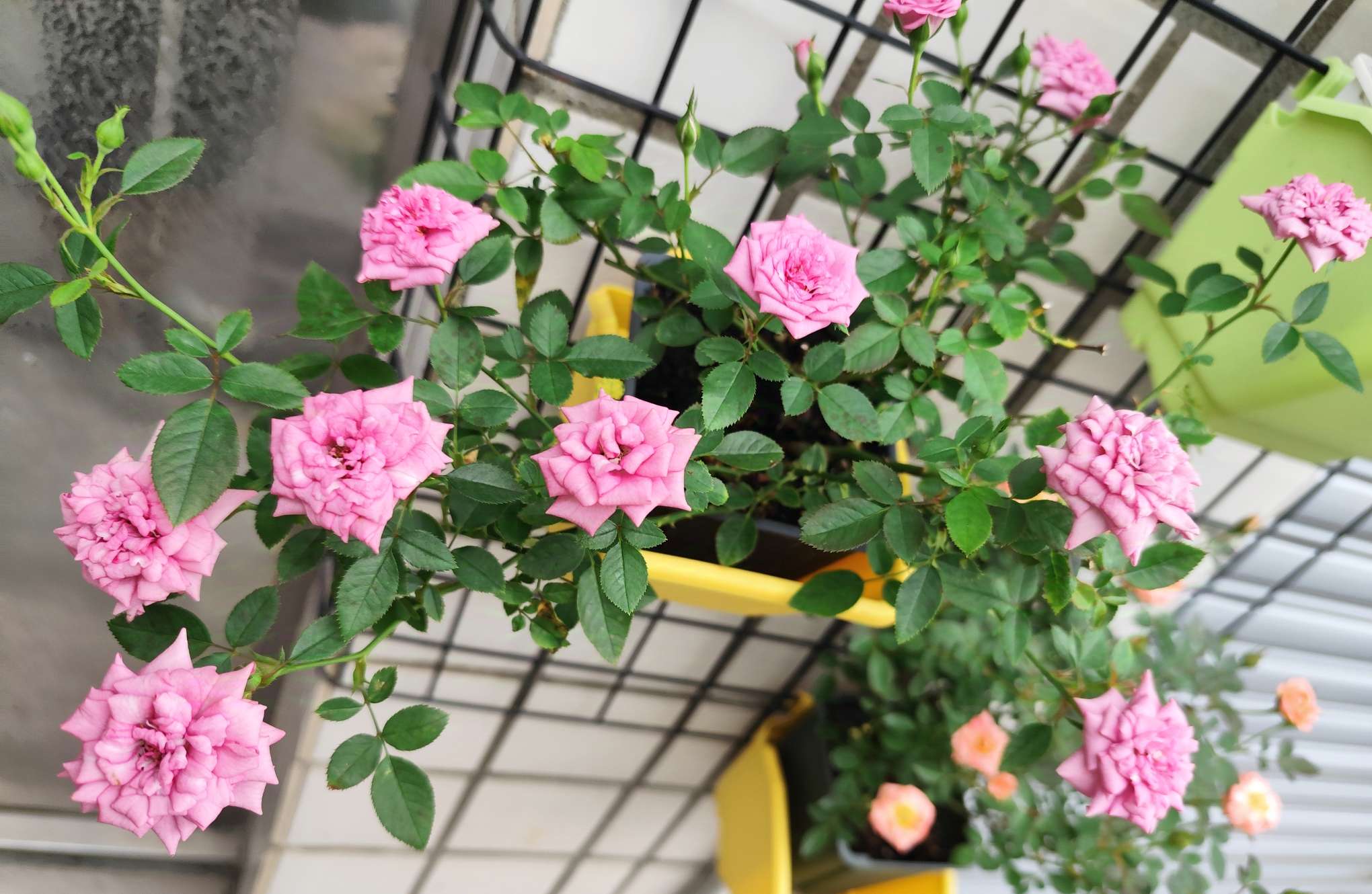 田尾三盆一百的迷你玫瑰,開了十幾朵,cp值真高。