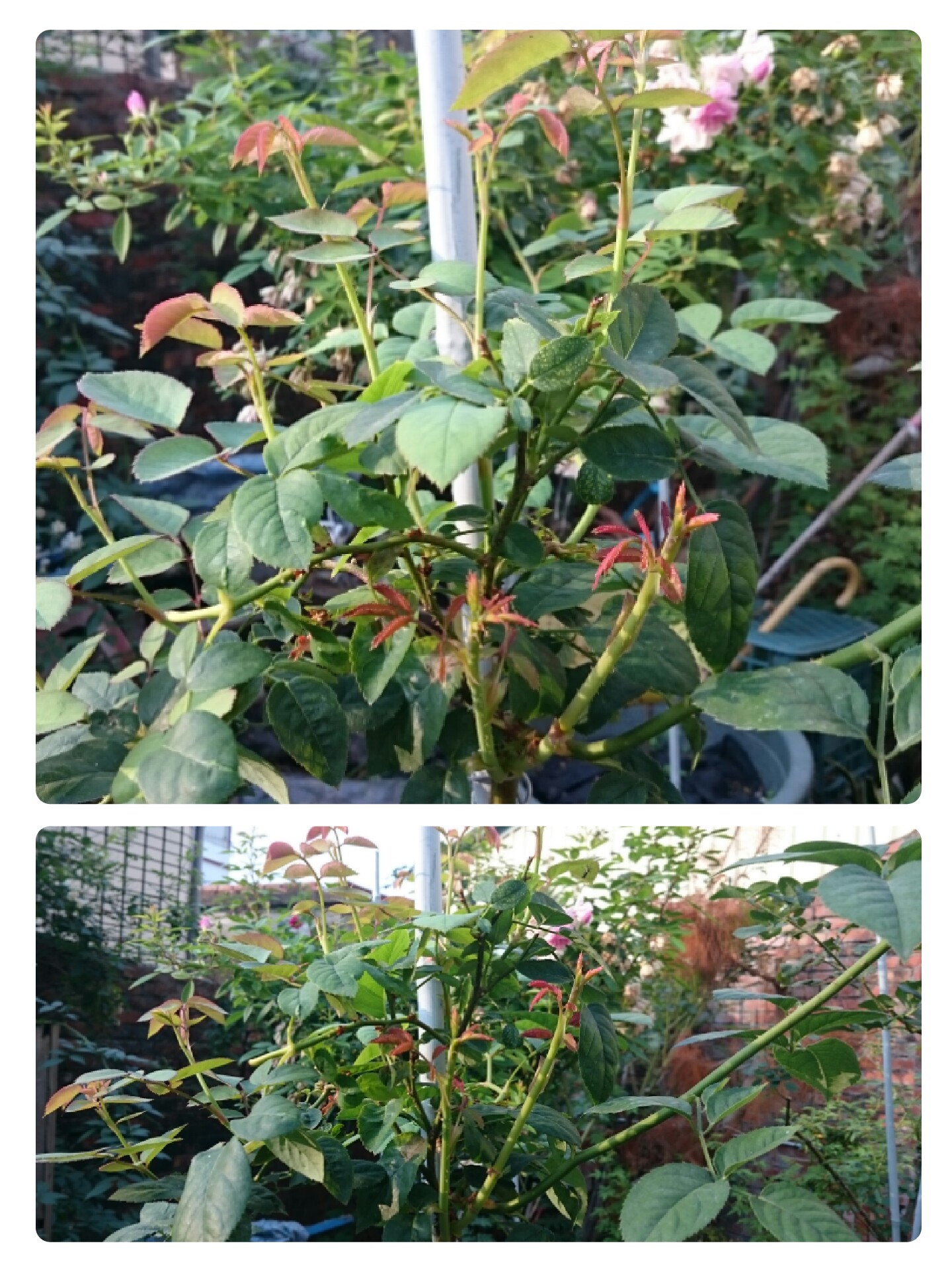 嫁接成樹玫瑰,筍芽一大堆,看起來爽得嫑嫑的~