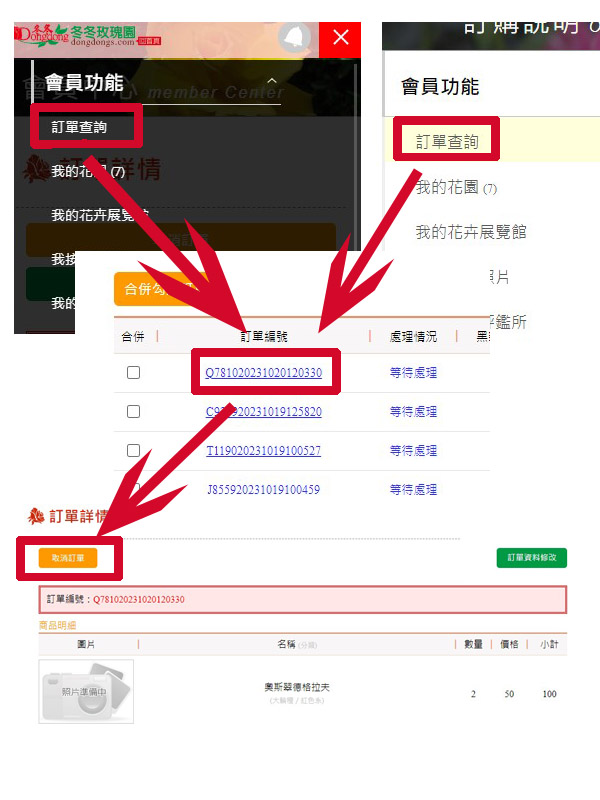 取消訂單操作示意圖