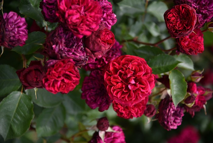 黑紅色的中輪簇生型花朵,一莖多花,成簇綻放。從帶黑色的花苞,綻放出充滿個性的黑紅色的花朵。高溫期時是紅色花色。大馬士革為基底,融入茶香與青草香的強香。香味強但單花花期持久。也適合用於切花。
