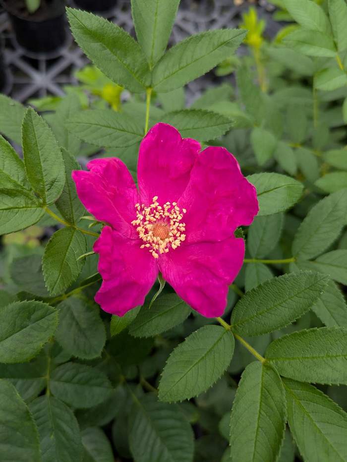 德國坦圖2020年作出,低矮的灌木型,高和寬皆在100公分內,長勢強,屬於Rosa rugosa 皺葉玫瑰這原種雜交的後代,繼承其葉子和花的外型但更適合盆植,花為深粉至桃紅單瓣,季節反覆開,冬季會有明顯落葉休眠期,隔年春季醒來抽芽的特性。