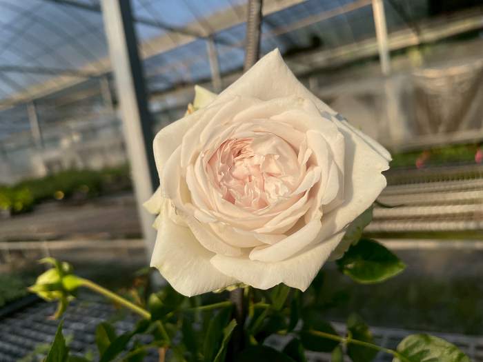產品規格為3.5吋黑軟盆,盆口直徑約12公分、深15公分;植株高度含盆約30~60公分;嫁接方式為靠接,砧木為多花野薔薇(無刺砧木),僅採3~5公分高的枝條作為砧木。
