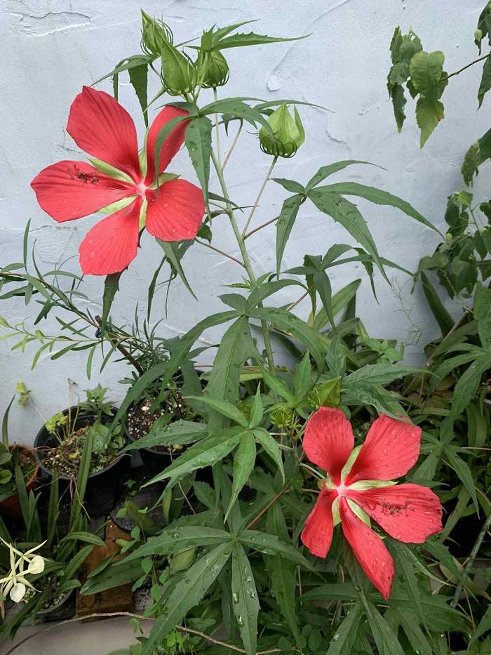 原產於美國東南部的 Hibiscus coccineus 沼澤芙蓉 。