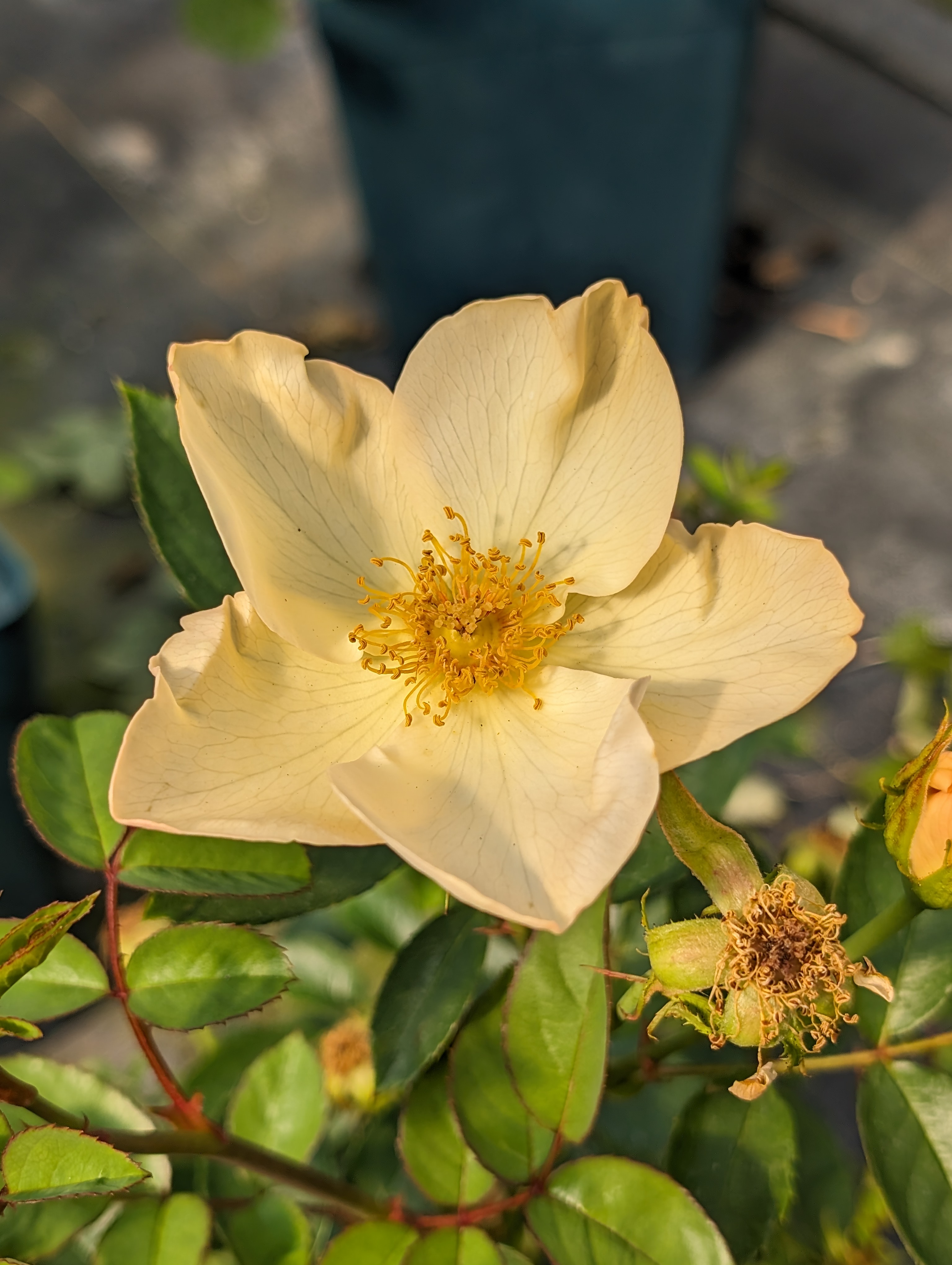 植株低矮緊湊的五瓣單瓣中輪花品種,初開偏乳黃色,隨者開放變為乳白,花有些微波浪和反捲,長勢中等。