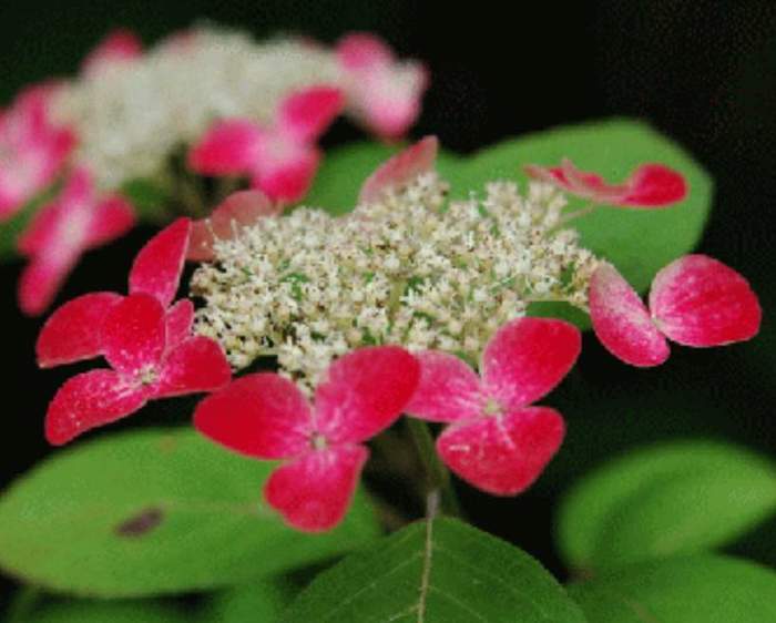 山繡球 紅,為日本原生的選育個體,初開為白色,後漸變成 粉、桃色至深紅色,是繡球中少數不會因土壤酸鹼變化的類型。